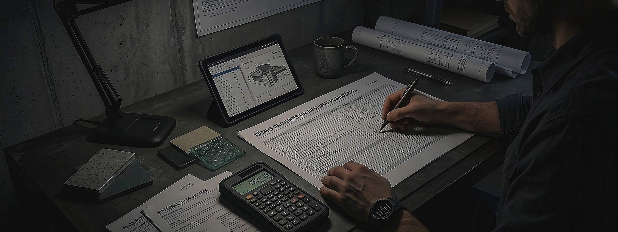 Pēc objekta apskates meistars aprēķina tāmi, kurā nosaka darbu veidus, apjomu un izmaksas.